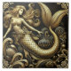 Ethereal Baroque Golden Mermaid Ceramic Tile