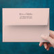Surprise your guests with this captivating blush pink envelope, with delicate floral detail inside in a graceful blend of blush pink, caffe latte, peach, ivory, misty blue and sage tones. Outside flap modern hand written Script monogram area for you to add your name(s) and address. If you prefer to receive envelope without return address text and use our coordinating return address labels, simply delete all text from text boxes to remove. Part of Ethereal in Rose Gold Wedding and events Collection.