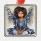 Ethereal Christmas Black Angel in Blue Elegance Metal Ornament