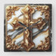 Ethereal Cross Carved in White Marble Square Wall Clock