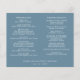 Elegant modern timeline program with watercolor images. Use of modern elegant hand written calligraphy details. Hand painted watercolor timeline images in golden tones and with coordinating watercolor floral details to bouquet on the corner. Flowers and foliage in blush, dusty rose, ivory, peach, cloudy slate blue, grey and sage tones. Floral details coordinating our "Ethereal" Dusty Blue wedding and events collection. Ability to customise information on the back to suit your needs and even move around timeline images and text to a different order. Back in a slate/cloudy dusty blue tone. Also available with back in blush peach and in white.