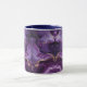 Elevate your coffee experience with this mesmerising and intricate marble-like pattern on a coffee mug. Featuring swirling shades of purple and deep blue, accented with luxurious golden streaks and specks, this design creates a stunning visual contrast. Perfect for adding a touch of sophistication to your morning routine or as a unique gift for coffee lovers who appreciate elegance and style.