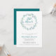A modern Christian baby shower invitation perfect for anticipating a long awaited child. This design features the phrase "little miracle" in teal hand lettered font, the Bible verse "for this child we prayed" 1st Samuel 1:27, encircled by a blue green watercolor eucalyptus wreath on a white background. The reverse is in solid teal green.