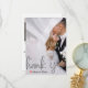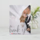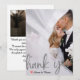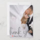 Express your gratitude with modern elegance. This design features a romantic faux vellum overlay effect and custom photo placement for a chic, minimalist finish.This design utilises a sophisticated digital effect to simulate the look of translucent vellum paper. A semi-transparent white layer creates a "misty" or "frosted" background over your custom photography, allowing the image to show through softly. The typography features large, sweeping brush script in a printed silver-grey tone—simulating metallic ink without the shine. A small, hand-painted watercolor heart in deep red provides the only pop of colour against the monochromatic grey and white palette.This is a flat printed image with a {Faux Vellum and Printed Silver} effect. It does not contain actual translucent paper sheets, metallic foil, or raised textures.