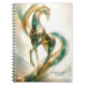 This artwork features a majestic horse sculpted from flowing, translucent ribbons of gold and teal, evoking the look of molten glass and liquid light. The dynamic curves and luminous gradients give the horse a sense of motion, grace, and elegance. Set against a soft, radiant background, the composition blends fantasy realism with abstract digital art, symbolizing freedom, strength, and creative energy. The sleek, modern aesthetic makes this notebook ideal for artists, writers, and dreamers who appreciate imaginative, high-end visual design.