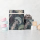 This gift wrap has glowing teal and pink jellyfish drifting gracefully upward through a dark sea, with delicate anemones nestled between them.