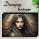 Bring beauty to any project with Decoupage_Boutique's premium ethereal maiden decoupage paper. This mystical design features a haunting portrait with luminous blue eyes beneath a flowing golden-embroidered veil against a deep teal background. This design creates an elegant focal point perfect for reading nooks, mystical boutiques, or fantasy-inspired spaces. COLOR COMBINATIONS: antique gold, teal blue, pale ivory, deep bronze, and shimmering cream enhance natural beauty. DESIGN FEATURES: luminous lighting, delicate embroidery, and otherworldly ambiance bring depth to your projects. PERFECT FOR: book boxes, tarot card holders, fantasy shops, mediaeval retreats, jewellery containers, and decorative panels. Ideal for a variety of projects both large and small. #DecoupageBoutique #CelestialArt #MysticalDecor #FantasyArt #DigitalArtStyle