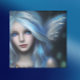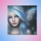 Fairy poster. Digital art depicting a beautiful ethereal mystical magical fairy with bright blue eyes and hair. generativeart