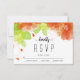 Ethereal orange flowers floral fall wedding RSVP card. The upper part is covered with a bouquet of beautiful orange flowers with green leaves.