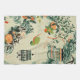 The picture shows a stylish, minimalist pattern, combining lush green leaves and juicy orange fruits, which rest on a soft, undulating background. Two elegant temple structures harmoniously emerge from nature, radiate peace and spiritual depth. The palette of green, orange and cream colors gives freshness and serenity, inviting to contemplation and inner peace.