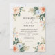 Delicate watercolor blossoms in soft peach and blush tones cascade around this design. The romantic floral arrangement creates an airy and elegant feel, perfect for a memorable occasion.