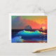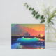 Ethereal Teal Waves, Ship and Pink Sunset Postcard