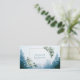 Define your brand with pristine clarity and serene elegance using this captivating business card. The design centers on a breathtaking misty winter landscape where tall, dark pine trees emerge from a thick, ethereal, blue-gray fog, creating an atmosphere of quiet grandeur. The center features a clean, bright white space for your information, delicately outlined by a thin metallic gold rectangular frame. The frame corners are beautifully anchored by abundant clusters of white roses and small blossoms, mixed with contrasting, dark green pine needle branches to complete the stunning winter motif. This artwork beautifully captures the quiet solitude and refined beauty of a hidden winter scene, resulting in a unique and sophisticated brand statement. This business card is ideally suited for a high-end event stylist specializing in winter or seasonal celebrations, a luxury jewelry designer showcasing cool-toned or icy pieces, or a modern floral designer emphasizing crisp, white arrangements. It would also perfectly suit a boutique candle maker whose products evoke crisp pine and white floral scents, or a luxury resort owner promoting a scenic getaway.