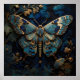 This exquisite piece captures the ethereal beauty of a butterfly amidst blossoming flowers, rendered in mesmerising hues of blue and gold. The intricate detailing and metallic sheen evoke a sense of timeless elegance, making it a captivating addition to any collection.