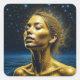 Ethereal Woman Meditating Under the Stars Square Sticker
