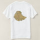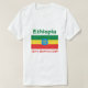 An editable title and slogan accompanies the yellow motif within a blue circle over green, yellow and red bands of the Ethiopian flag on the front of this t-shirt. The back displays a detailed map of Ethiopia.