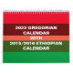 This calendar has both Ethiopian and Gregorian calendar. The Ethiopian Calendar is 7 to 8 years behind the Gregorian Calendar, has 13 months instead of 12. Ethiopian new year falls on September 11th or 12th depending on the leap year. This calendar can be used as a converter from Gregorian to Ethiopian dates and vice versa.