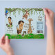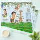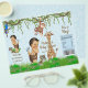 Boy safari baby shower chip bag wrappers withcute ethnic baby boy and safari animals on a blue damask jungle background. You can customize this adorable boy baby shower chip bag wrapper by simply adding your text. To assemble, wrap the flyer around your chip or snack size bag and secure with double sided or regular tape. Fits 1 ounce chip or snack bag - OR - you can leave the top open, slip in a sandwich bag, and add your own bulk snack mix and seal the top.