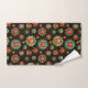 Seamless pattern of gold and brass, ethnic brooches decorated with carnelian, turquoise and jasper on brown background. Ethnic jewellery.