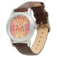 Watch in a modern tribal / ethnic chevron damask, or flame stitch pattern, in shades of mustard gold, rust orange, terracotta and coral orange, accented with chocolate brown