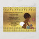 Elegant custom vintage ethnic baby shower book request insert card for African American baby boys or gender neutral showers with a beautiful vintage illustration of a cute and adorable baby with stylish white diaper. He is talking on an old red retro telephone asking you to please bring a book! He is holding a little blue suitcase and his quirky teddy bear is leaning against it - he's all packed up and ready for his arrival! The background is a pretty faux gold foil with a classy, modern, contemporary gold chevrons border. Chic, trendy, fun, fashionable, funny, amusing, humourous, whimsical, affordable bring a book cards. PLEASE NOTE: These are flat printed graphics - no real gold foil or raised parts.