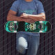 Ride the streets with confidence and express your unique identity with this exceptional skateboard. Elevate your skate game and turn heads wherever you go with our Green Ethnic Owl Skull Skateboard.