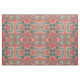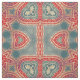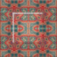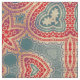 Vibrant and unique fabric design featuring red and beige ornaments on a teal gradient background.