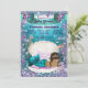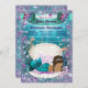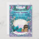 Ethnic mermaid baby shower invitation with adorable dark hair ethnic mermaid princess with diamond tiara on a pretty pearl draped clam shell on a beautiful teal blue and purple under sea background. You can easily customise this beautiful mermaid baby shower invitation for your event by simply adding your details. This is a printed design with no real glitter, jewels, bows, etc.