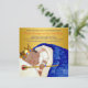 Ethnic royal prince baby shower with adorable sleeping baby prince wrapped in a royal blue blanket wearing a regal gold prince crown and pearl bracelet and bejeweled sceptre. This sweet ethnic prince royal blue and gold baby shower invitation is easily customised for your event with you details in the font style of your choice. You can also remove the gold background and leave plain or add your own colour. This is a printed design with no real bows, jewels, etc.