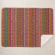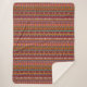 A richly detailed blanket featuring a complex ethnic striped pattern in a warm color palette: burgundy, ochre yellow, turquoise, and cream white. The design is composed of symbols and textures that evoke tribal craftsmanship, adding a bohemian and cozy touch to the sofa or bed. It's a striking decorative piece.