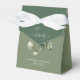 An eucaluptus and sage favorbox with a white Ribbon. Customisable text (names and date) front and back. An Eucaluptus branch with the skriptfont with glyph is the design element on a two shades background. Modern and minimalistic whith the same designtheme as the rest of the collection. Mix and match for your special day.