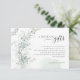The Watercolor Eucalyptus Botanical Sage Wedding Wishing Well Enclosure Card is a beautiful and refined piece that perfectly complements any wedding invitation suite. The delicate watercolor washes of sage green and soft eucalyptus leaves create a sense of natural beauty and tranquillity, while the botanical elements are intricately crafted to create a harmonious and sophisticated composition. The typography is simple yet elegant, with a modern script that adds a touch of romance and warmth. Matching items are available.