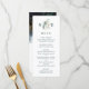 Personalise this elegant and modern wedding menu with your monograms joined by a gold and green watercolor eucalyptus ampersand with a green gold ombre pattern on the back. Matching items are also available.