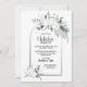 Invite your friends and loved ones to your Christmas party with this cotton flower and eucalyptus greenery arch holiday party invitation.