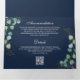 Eucalyptus Arch Photo Navy Blue QR Code Wedding Tri-Fold Invitation