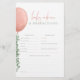 A cute baby advice & predictions card featuring a hand-painted balloon. The watercolor balloon appears on the left-hand side of the sheet and is decorated with chic eucalyptus greenery. There is space for the guests to write their birth predictions, resemblance predictions, and advice for the new parents. This activity card was made to match our Watercolor Eucalyptus & Balloon Baby Shower collection. View the collection linked on this page to see the full set. Feel free to message me with any questions, I'll be happy to help!