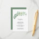 This beautiful wedding reception enclosure card features a graphic of lush greenery, eucalyptse leaves and flowers across the top.