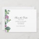Modern Eucalyptus Botanical Script Save the Date card. Featuring purple and green bloom with script typography.