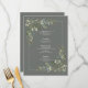 Create the perfect reception setting with this trendy 6.5"x 8.75" menu design featuring this elegant eucalyptus botanical watercolor floral design. Perfect for, but not limited to, that backyard and garden wedding. Part of a matching set. See full collection here: https://www.zazzle.com/collections/eucalyptus_botanical_sage_green_script_wedding-119437527356989510 Contact designer for more products in this design, or design variations. Copyright Elegant Invites, all rights reserved.