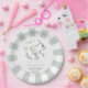 Watercolor green greenery eucalyptus, boy clothes, toys baby shower paper plates.