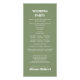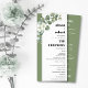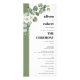 This BUDGET wedding ceremony and party program is beautifully designed with a white frame and a sage green border on the left side, giving it an elegant touch. In the upper left corner, there is a delicate branch of eucalyptus adorned with white flowers, adding a natural and romantic element to the overall design. The text is highlighted in bold typography, making it stand out and easy to read. The back of the program is a calming sage green colour, tying the whole look together seamlessly.