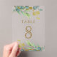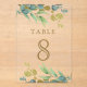Elegant table number card featuring beautiful leaves and modern typography.