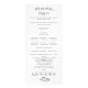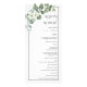 This BUDGET floral wedding ceremony and reception program showcases a branch of eucalyptus adorned with white flowers and sage green leaves in the top left corner. The couple's names are elegantly displayed in decorative lettering, and a thin black border frames the entire design.