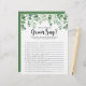 This eucalyptus bridal shower what did the groom say game is a perfect for a rustic wedding shower. The design features hand-painted watercolor green eucalyptus, inspiring natural beauty.