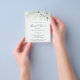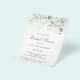 Elegant budget bridal shower invitation flyer featuring eucalyptus leaves and greenery with speckles of faux gold glitter at the top. Below are your event details in dark green, over a pastel watercolor wash. The backside is a matching shade of soft blue green. A simple, rustic design that is great for a botanical themed celebration in the summer. These cheap bridal shower invitations are printed on sheets of paper for a budget friendly option. PLEASE NOTE: These do not include envelopes.