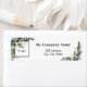 Eucalyptus greenery and faux gold foliage. Decorated with faux glitter dust. Personalise and add your business logo, name and address. Black letters.