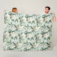 Eucalyptus Cream Sage Floral Fleece Throw Blanket