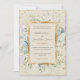 Gorgeous elegant & rustic gold framed wedding invitation with mixed greens of eucalyptus & gold hand drawn leaves that were used to create this lovely invite. Just exquisite. Creaming background enhances the faux gold trim & leaves in this beauty. Faux gold splashes on front & back to create a chic look.