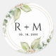Elegant watercolor Eucalyptus Greenery envelope seal or favour sticker. Text area for wedding couple's initials or single name for other events. Second text area for date, or short message. Also available with circular area in green, mist blue or yellow tan. Part of our "Elegant Greenery Eucalyptus Wedding and Events" collection with a variety of coordinating products available.