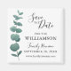 It features a simple watercolor eucalyptus sprig with elegant typography.